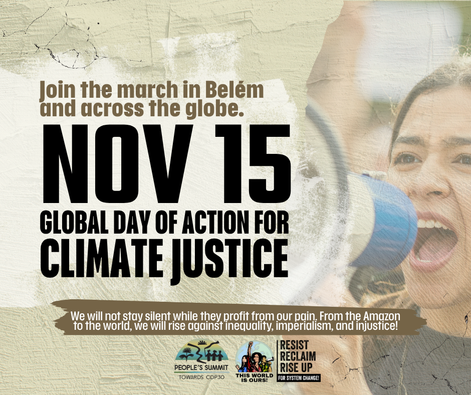 Join us on November 15 for the Global Day of Action for Climate Justice. This is a moment for movements everywhere to rise together for justice, equality, and system change.